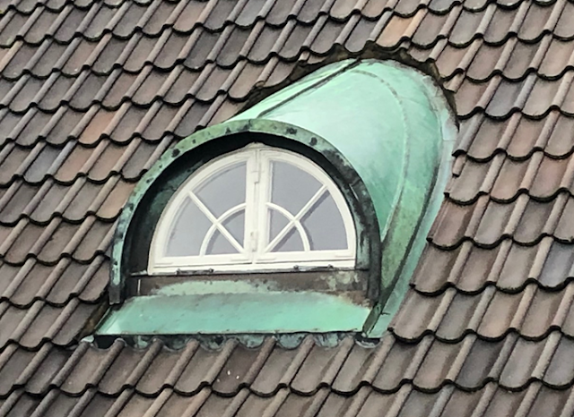 Hur som helst, till skillnad från takfönstren är homejan som lösning på ljusinsläpp i Saltarvets skånska 20-tals byggnad något jag är rätt rätt nöjd med. Homejor är ett klassiskt regionalt arkitektoniskt uttryck vilket går tillbaka åtminstonde till 1700-talet, men säkert längre. Lunettfönstret är ett klassicistiskt uttryck som introducerades senast i mitten av 1700-talet och förblev vanligt i empiren och den eklektiska arkitekturen under 1800-talet. Efter att ha tillbringat en något tynande tillvaro under jugend- och nationalromantiksåren 1900-1920 så återkom lunettfönstret med besked i 20-talets nordiska klassicism, varför det passar fint på Saltarvet.
