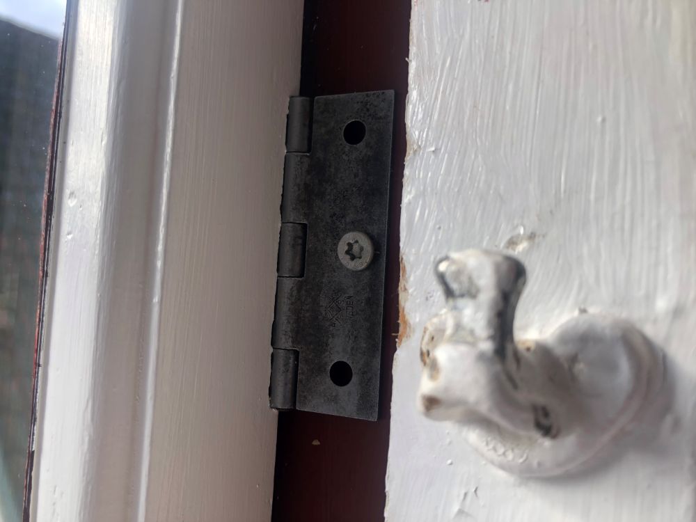 Med kopplade fönster fungerar det så att kopplingsgångjärnet skruvas av från innerbågen och får följa med ytterbågen. Innerbågen fästs sedan tillbaka i karmen i sitt eget fönsterlås samt med två trallskruv i den ände som saknar lås. Mät bågens tjocklek, överför detta mått på karmen ut från listfalsen och skruva in trallskruvarna något på skrå. En i ovankant och en i nederkant. Skruva in skruvarna ganska långt så att bågen hålls på plats mot skruvhuvudet och inte nöter längs skruvens lägg. Trä sedan in bågen mellan listfals och skruvhuvud och stäng fönstret som vanligt med fönsterlåsen.