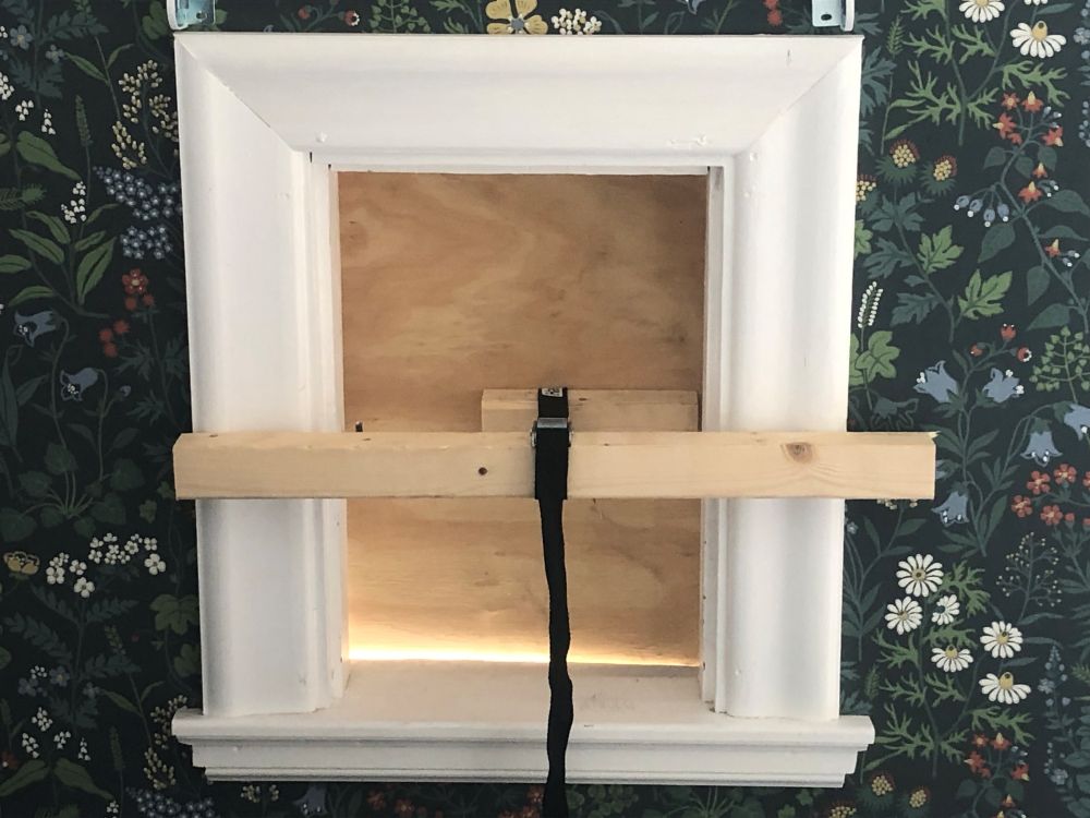 En enkel variant här är att borra två hål skivan på vardera sidan av mittposten och trä ett spännband igenom hålen och sedan runt mittposten. Använder man kanalplast vill man ibland få till lite mer stadga och man kan då göra fler fästpunkter genom att fästa spännbanden i kanalplastskivan med en 15 cm lång bit regel som skruvas fast på insidan av kanalplastskivan. Spännbandet skall då ligga mellan kanalplasten och regeln. Skruva genom kanalplasten in i regeln. När man använder den här lösningen behöver man tänka på att inte placera regelstumparna mitt för fönstrets mittpost, utan istället centrera dem en i varje luft. Spännbanden fästs sedan runt en längre fästregel som får vila mot ytterväggens insida. Någon skruv för att fästa regeln på insidan behövs inte, utan regeln hålls på plats med hjälp av trycket som uppstår mellan fästregel och kanalplastskivan när spännbandet spänns.