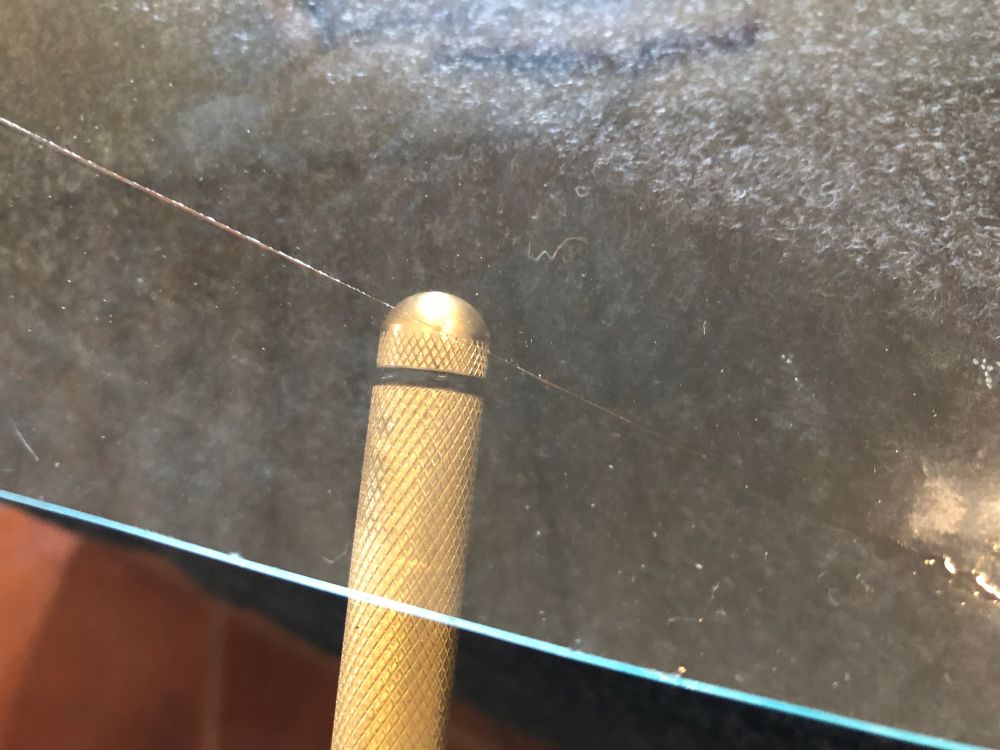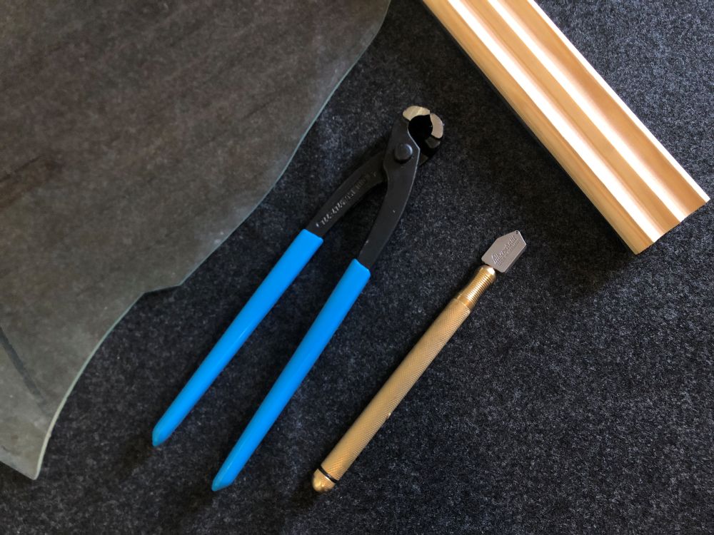 Med lite övning kommer du snart kunna skära glas på fri hand och du kommer märka att underlaget inte spelar någon större roll. Jag skär mycket av mitt glas direkt liggande på bågen. På det sättet behöver jag inte mäta eller förmarkera snitten med spritpenna.